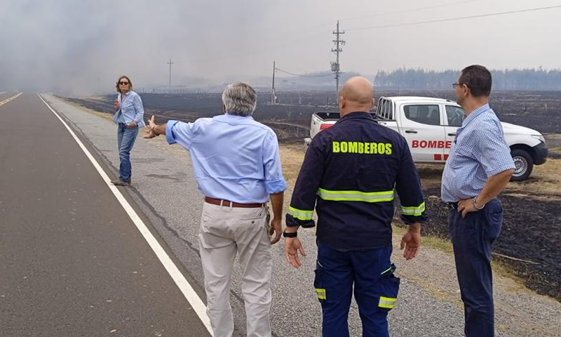 Inmediatamente concurrió al lugar Policía Nacional Caminera y suspendió el tránsito por esta ruta. A su vez, se encuentra en camino más personal para el combate y maquinaria terrestre (motoniveladora y retro combinada) que se estima llegarán pronto.